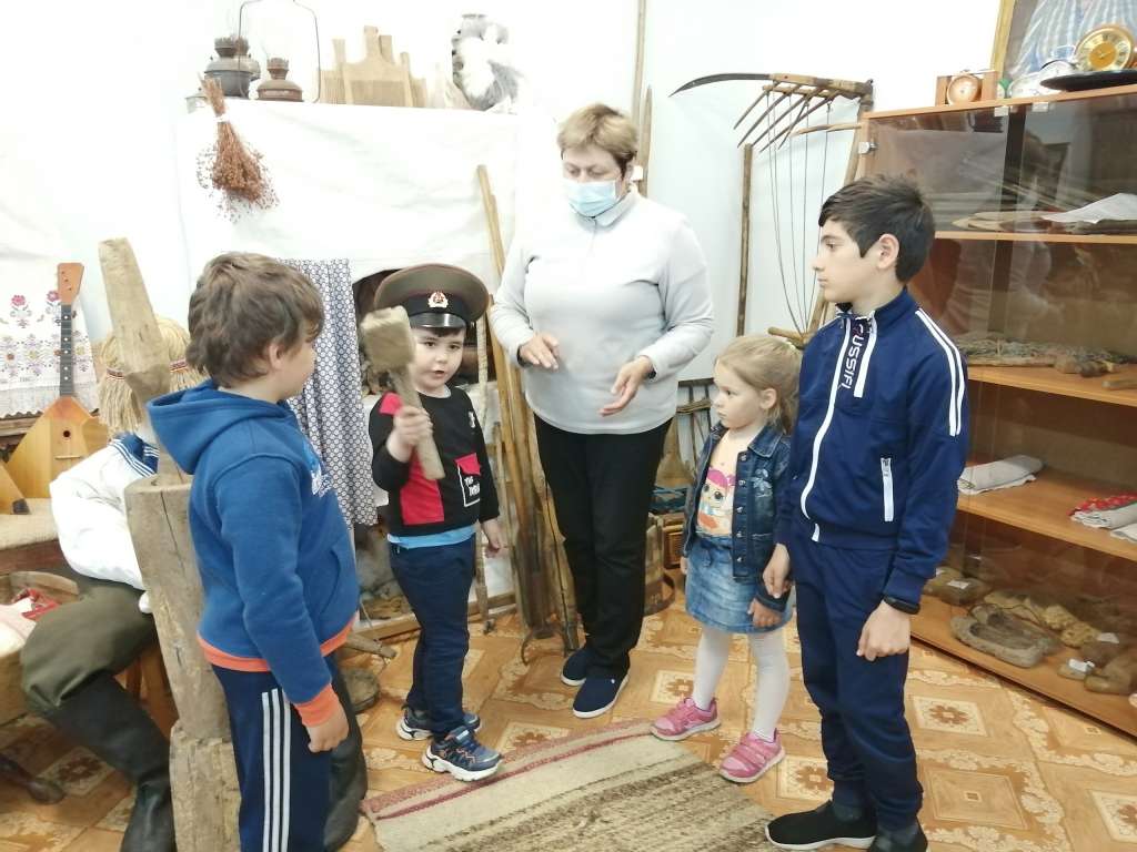 Хмелевские жители много трудились. Делали все своими руками: строили избы, делали мебель, изготавливали посуду и предметы быта. В ходе тематической экскурсии можно было познакомиться с предметами и их принадлежностью, взять в руки, рассмотреть попробовать на ощупь.