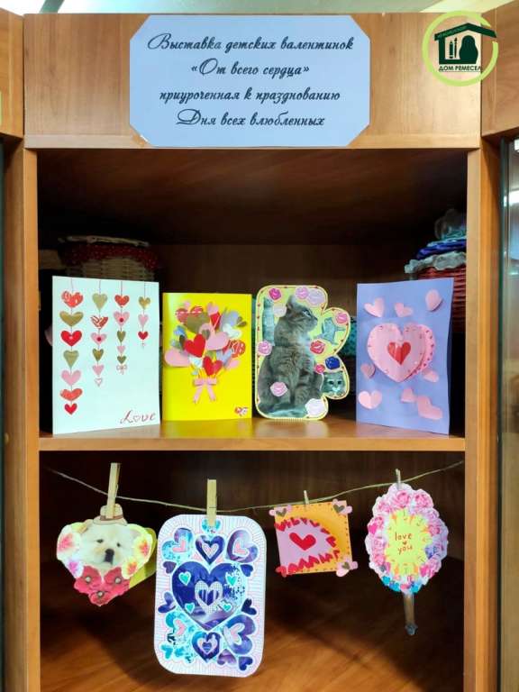Дня всех влюбленных – дню дружбы и любви 09 Февраля 2022, 09:42 Сегодня в мастерской Дома ремесел организована небольшая выставка детских валентинок, приуроченная к празднованию Дня всех влюбленных – дню дружбы и любви.