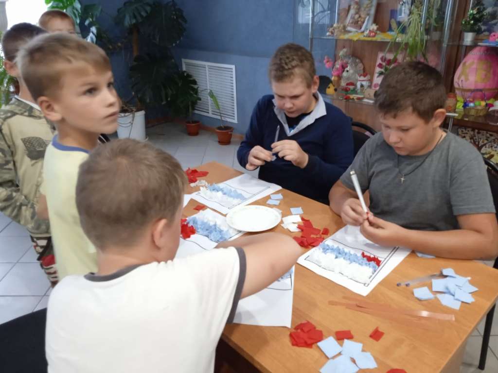 Кругловский модельный Дом культуры В Кругловском модельном Доме культуры прошёл мастер-класс по изготовлению флага России в технике торцевание. На плотную основу приклеили квадратики бело-сине-красного цвета. Эмоции радости и гордости за полученный результат переполняли ребят.