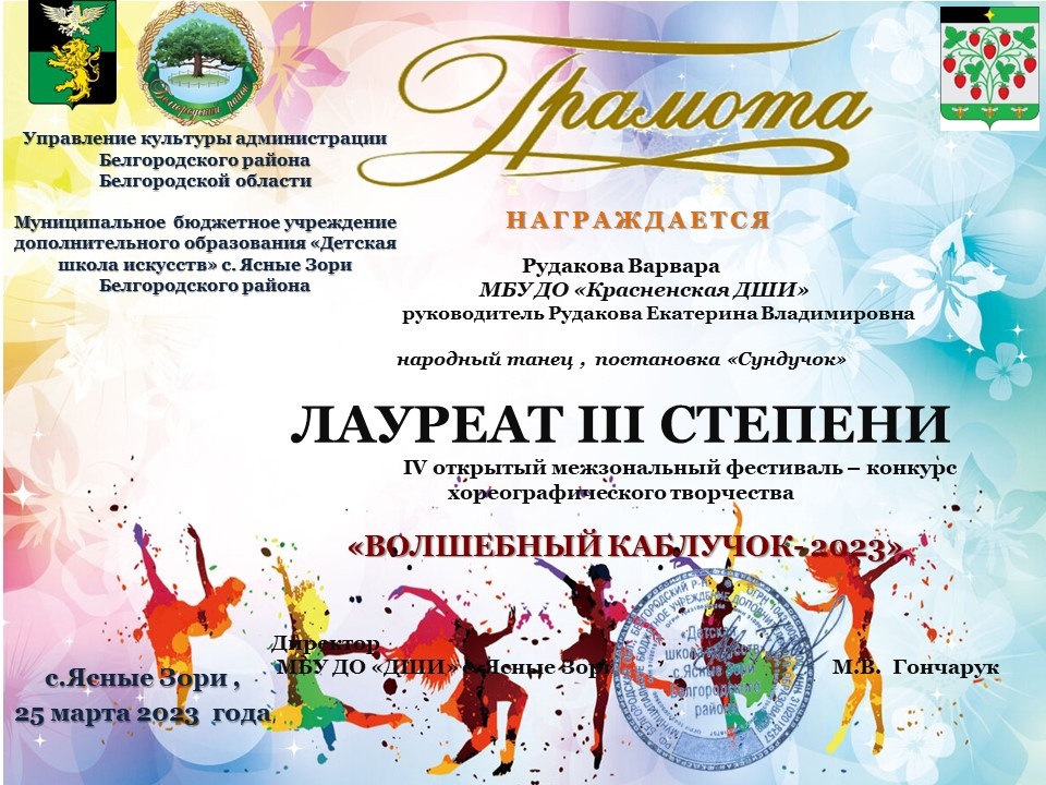 Солистка из Горок Рудакова Варвара с танцем «Сундучок» и хореографический коллектив «Карусель» стали лауреатами 3 степени.