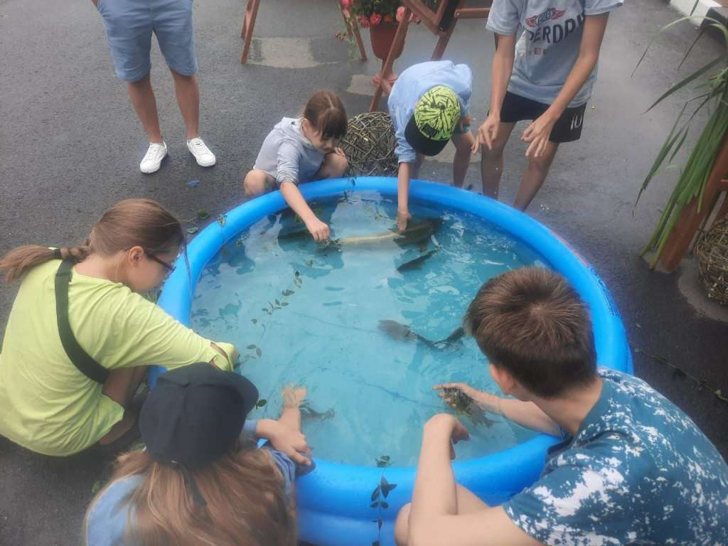 Особым местом притяжения как для детей, так взрослых на празднике стал бассейн с живой рыбой.