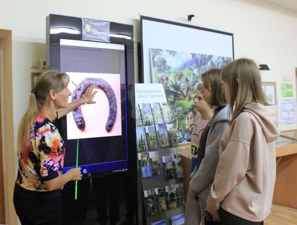Гости музея с интересом знакомятся с работой современного сенсорного оборудования, расположенное в залах музея.