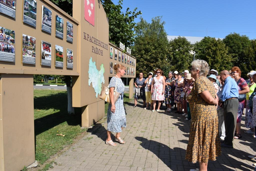 Почти 200 соседей серебряного возраста познакомились с достопримечательностями и развитием Красненского района. В программу посещений включены посещение современных спортивных объектов, Святого источника – родника «Рубленный», памятников архитектуры и прогулка по центральной площади села Красное. Завершением была музыкально-литературная гостиная «С малой Родины начинается Великая Россия».