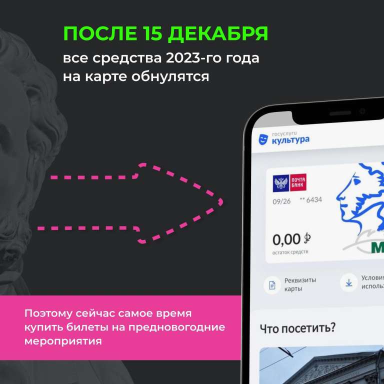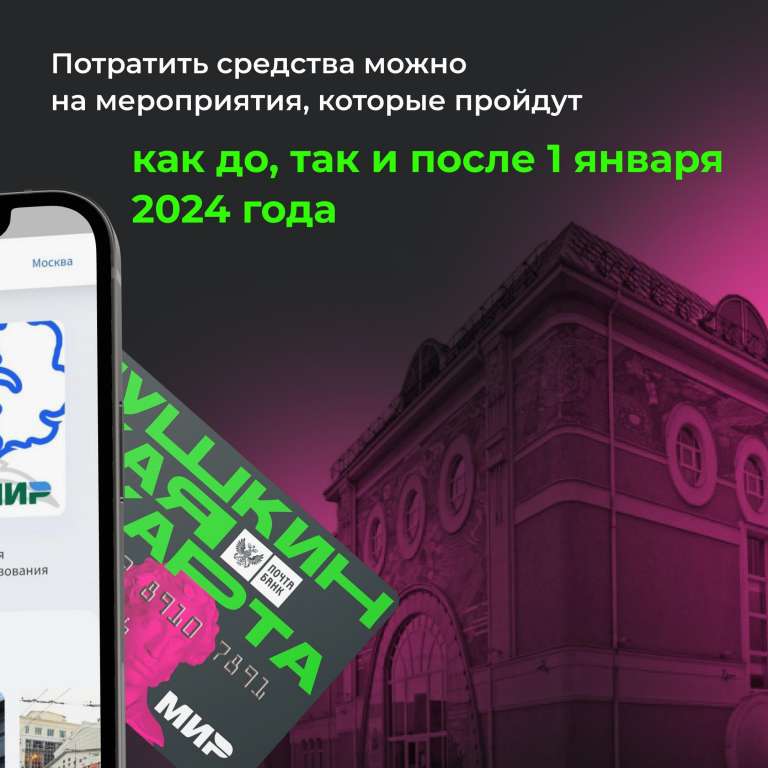 Средства на Пушкинской карте можно потратить на мероприятия, которые будут проводиться в текущем году, а также на события 2024 года