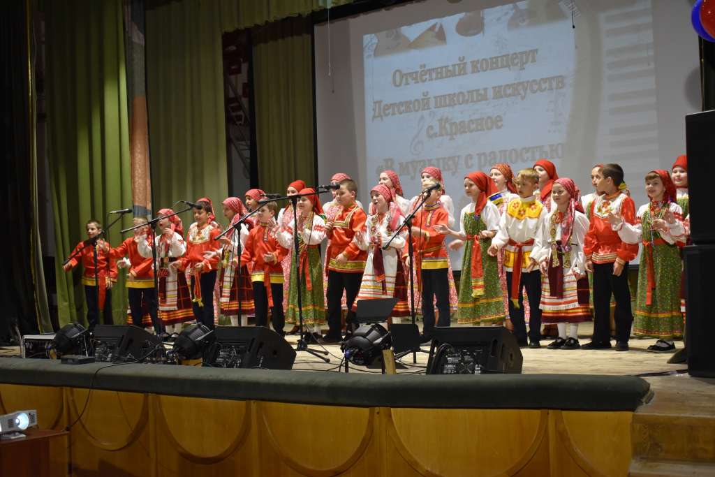 Отчётный концерт детской школы искусств с.Красное 19 Апреля 2024, 08:53 В детской школы искусств состоялся отчетный концерт. Молодые таланты продемонстрировали свои умения и навыки в области музыки, танца и актерского мастерства.