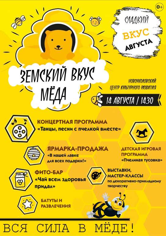 Самый сладкий, самый вкусный праздник пройдет в селе Новоуколово 14 августа - фестиваль-праздник <<Земский вкус мёда>>.