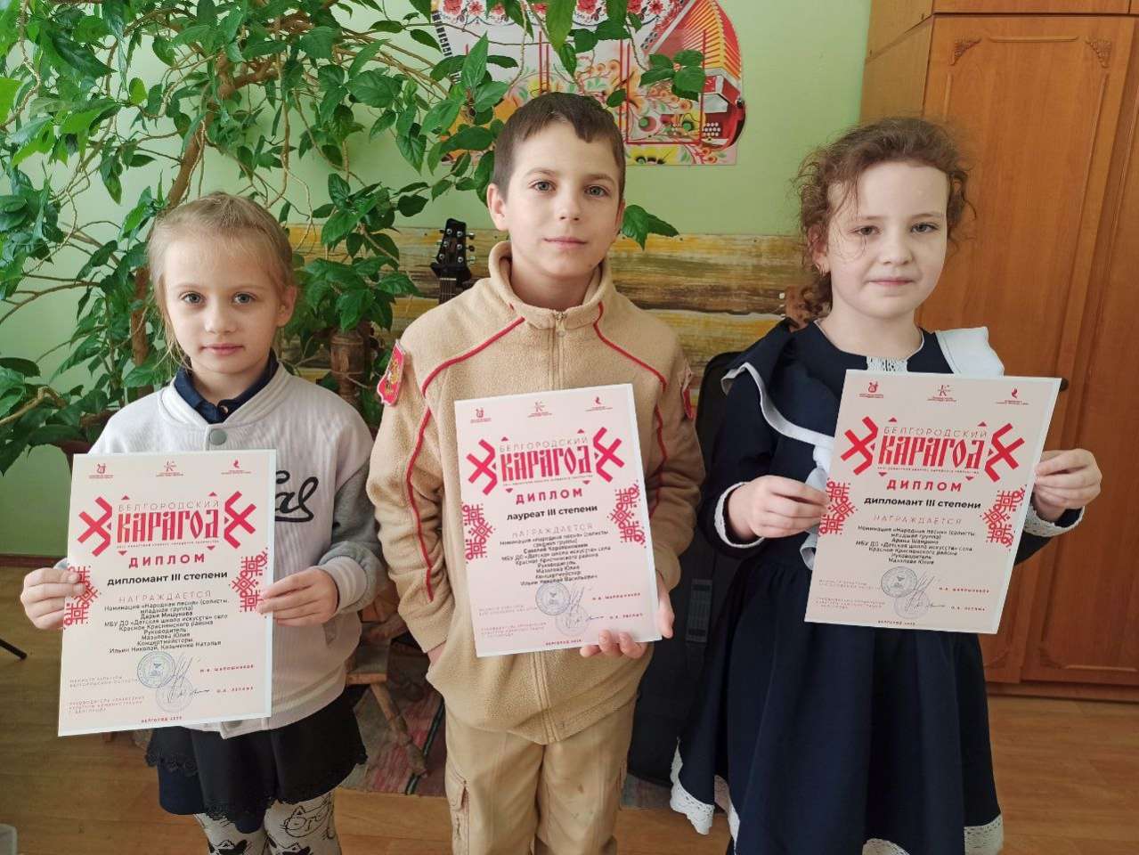 В номинации «Народное пение» Коротоножкин Савелий Лауреат 3 степени. Шамрина Арина и Мишукова Дарья дипломанты 3 степени.