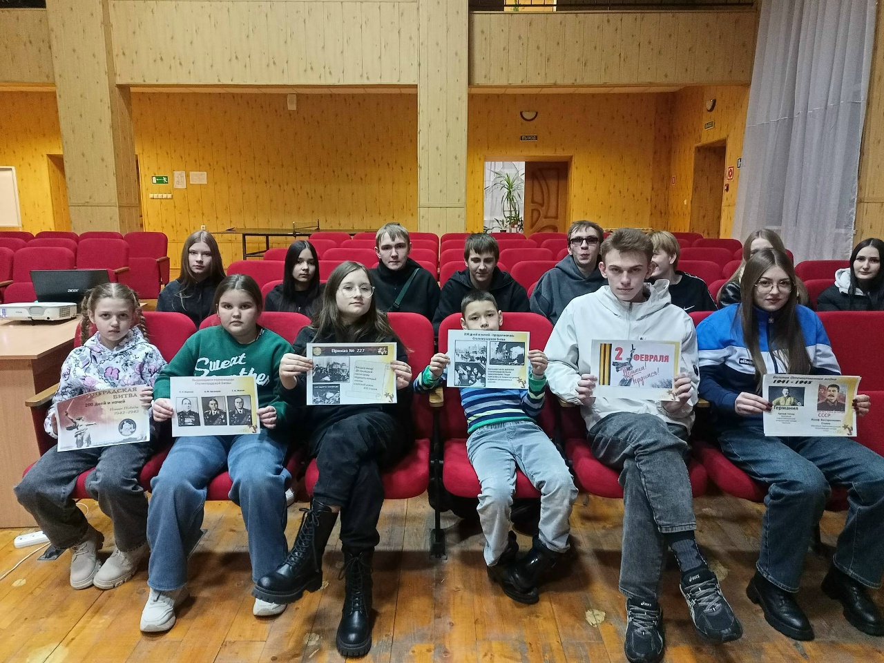 День разгрома советскими войсками немецко-фашистских войск под Сталинградом 02 Февраля 2026, 14:28 Кругловский модельный Дом культуры Есть в календаре такие даты, которые навечно вписаны в героическую летопись страны. Одна из них – Сталинградская битва. Это не просто сражение, это символ несгибаемой воли, мужества и самопожертвования, подвиг, который навсегда останется в памяти поколений. В Кругловском Доме культуры эта значимая для всех граждан нашей страны дата – 2 февраля, День разгрома советскими войсками немецко-фашистских войск под Сталинградом – была отмечена тематической встречей. С первых минут мероприятия, с информационной справки, ребята погрузились в атмосферу тех героических дней. Ведущий рассказал об исторических фактах крупнейшего события Второй мировой войны, в ходе которого решалась судьба нашей страны. Это было сражение, которое не просто изменило ход боевых действий Великой Отечественной войны, оно стало началом великого перелома. Сталинградская битва – это не просто цифры и даты. Это истории о людях, которые стояли насмерть, защищая каждый клочок родной земли. Это истории о невероятном напряжении и колоссальных последствиях, которые превзошли все битвы в ходе Великой Отечественной войны. Сегодня, вспоминая о Сталинградской битве, мы отдаем дань уважения тем, кто проявил невиданное мужество и героизм. Мы помним их подвиг и гордимся тем, что являемся наследниками победителей. Пусть эта дата напоминает нам о ценности мира и о том, какой ценой он был завоеван. Пусть подвиг героев Сталинграда живет в наших сердцах!