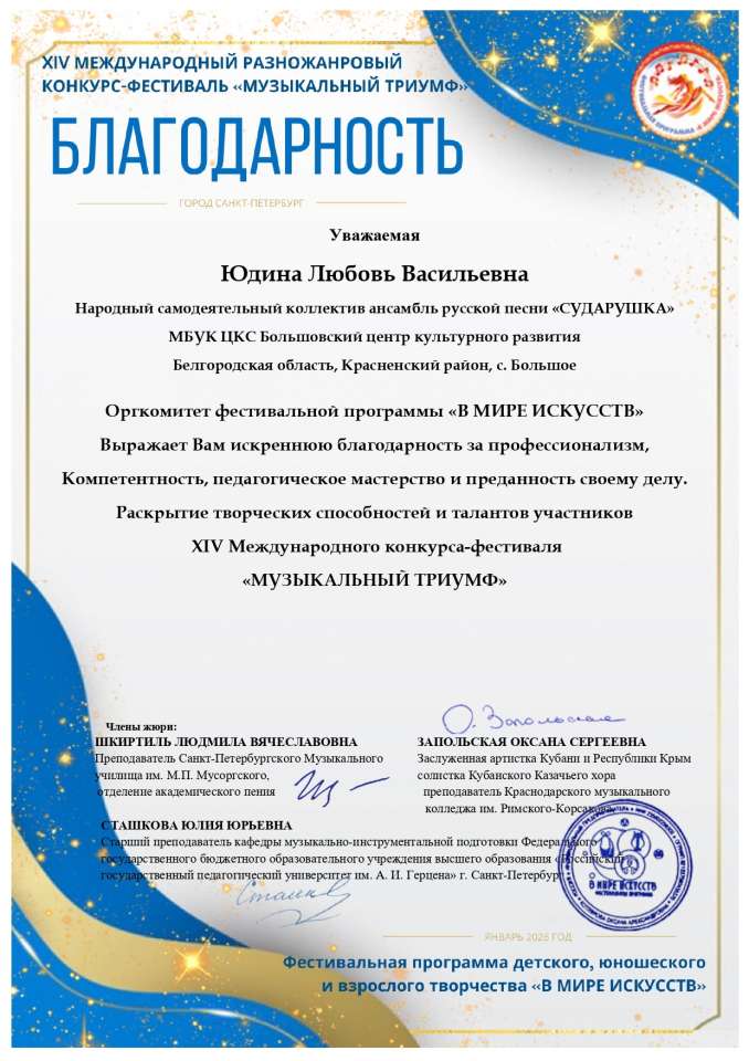 Мы поздравляем «Сударушку» и «Русский наигрыш» с этим триумфом! Желаем им дальнейших творческих успехов, новых ярких выступлений и неиссякаемого вдохновения!