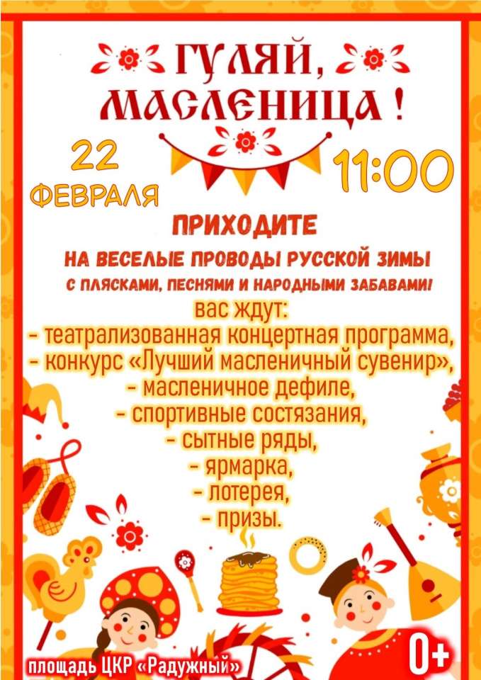 Дорогие друзья! Пришло время попрощаться с зимой и встретить весну с размахом! Приглашаем вас окунуться в атмосферу народного веселья и проводов зимы на нашем традиционном празднике Масленица!